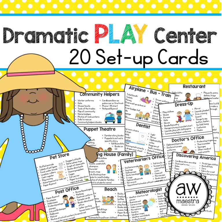 - Grab a copy of my Dramatic Play Center Cards for a whole bunch of inspirational, do-able ideas!
